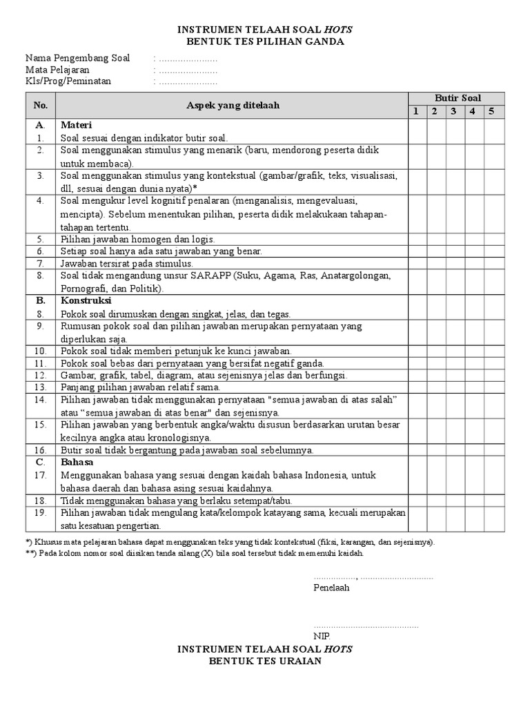 Instrumen Telaah Soal Hots Doc